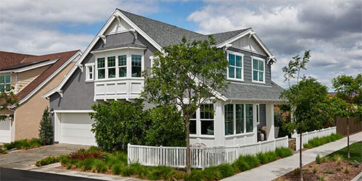 Our featured tract today is Ellwood at Beacon Park in Irvine was developed by Richmond American between 2015 and 2016. Ellwood has three 2-story models that range in size from 2,050 to 2,300 square feet each with 4 bedrooms, 3 baths and 2-car garages. Beacon Park amenities include a large central park with paved walkways, a swimming pool, spa, cabana, sport courts, outdoor kitchen and tot lot.