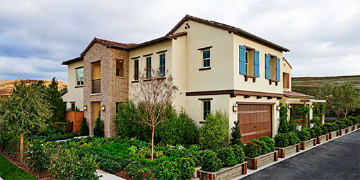 Our featured tract today is Genoa at Orchard Hills, an upscale gated community of 110 single family homes in Irvine and is currently being developed by KB Home. Genoa has three basic 2-story models that range in size from 3,594 to 3,964 square feet with 4 to 5 bedrooms, 4.5 baths and 2-car garages. All floor plans feature gourmet kitchens and expansive great rooms which open to beautiful covered patios, perfect for indoor/outdoor living and entertaining.