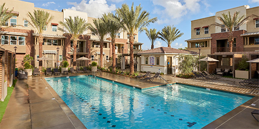 Our featured tract today is The Parker Collection, a 128 unit townhome project in Buena Park. The Parker Collection was developed by City Ventures between 2015 and 2016. It has five 3-story models that range in size from 1,290 to 2,043 square feet with 2 to 3 bedrooms, 3 to 4 baths and 2-car garages. Amenities include a swimming pool, spa and cabana.